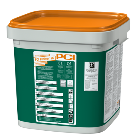 PCI Pecimor 2K to modyfikowana polimerami bitumiczna masa uszczelniająca. Nakładana w postaci półpłynnej, po wyschnięciu i związaniu tworzy elastyczną, ciągłą i całkowicie nieprzepuszczalną dla wody powłokę. W odróżnieniu od materiałów rolowych (pap i folii) umożliwia wykonanie powłoki bezszwowej, tzn. bez połączeń, które stanowią pierwsze potencjalne miejsce przecieków. Charakteryzuje się bardzo dobrą przyczepnością do podłoża, co oznacza pełne z nim połączenie (stan praktycznie niemożliwy do osiągnięcia w przypadku zastosowania przywołanych już pap oraz folii), a tym samym brak możliwości przesiąkania wody.